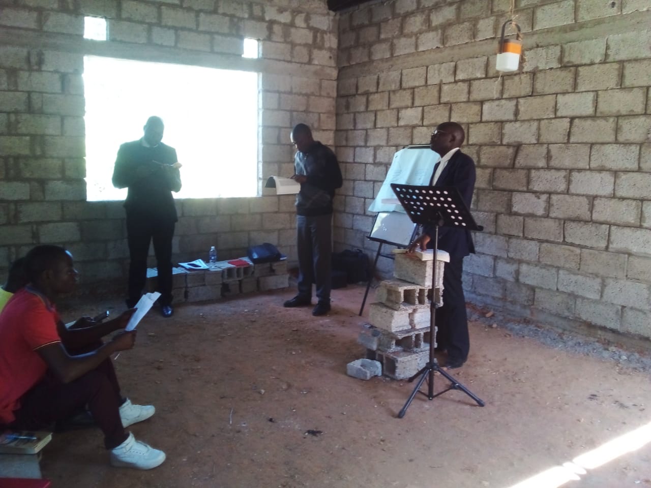 The Sunday Service started at 09:30 AM. During this service three believers gave testimonies. One sister broke down in crying as she expressed how thankful she was to God for bringing her to the Word. A brother, who first came to this place as a worker of the bricklayer who was constructing the church, testified how he came to the Word by listening to the preaching whilst he was doing bricklaying work. Several times he asked his boss to allow him to join the service when it was prayer time but he was denied the time and so he could only listen to the Word whilst working atop the walls of the church building when a service was in session. He narrated how one sermon pierced to his heart and he made a decision to accept the Word. Another brother testified how he one day came as a stranger, and that day he says, “The pastor kept talking about the vanity of playing cards and gambling. I wondered who told him about me because I was so obsessed of it and thats what everyone knew about me. After that preaching I stopped gambling and a lot has changed in my life!” I am still trying to remember which exact sermon I mentioned gambling in. But well, God had a message for the brother and he dropped something along the message that was specifically for him and he now is a believer and very useful person for the church there.