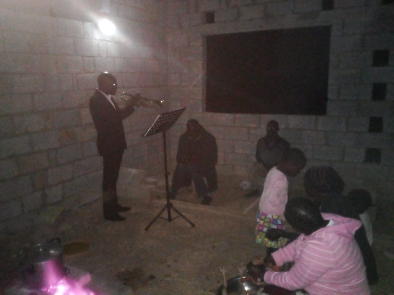 Just before food was served, about four strangers – unkempt and dirty – entered this church room were the cooking and singing was happening. There was one elderly man and two young men. One of the young men was a muslim. This was strange. It was too late at night to have visitors. They were drawn to come to come to the place by the sound of the trumpet they heard. We praised the Lord because all things work together for good.